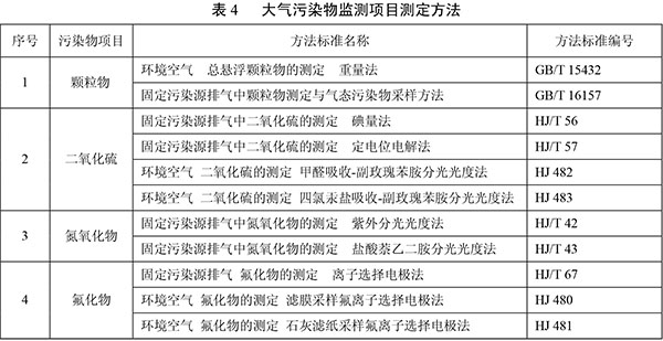 5.2.3對企業(yè)排放大氣污染物濃度的測定采用表4所列的方法標準。