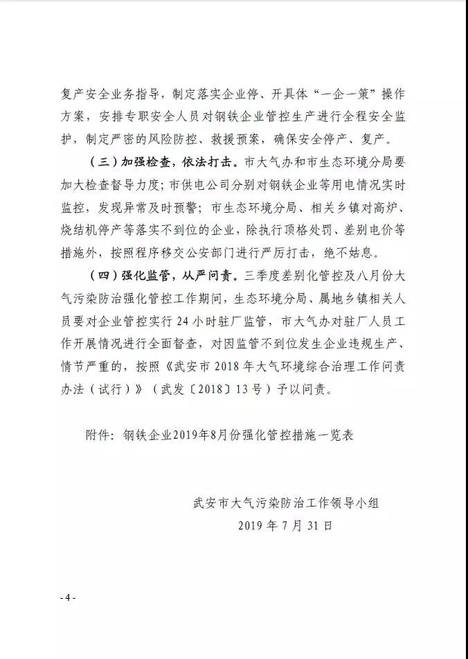 日前,武安市發(fā)布《武安市2019 年鋼鐵焦化水泥行業(yè) 八月份大氣污染防治強化管控實施方案》,涉及全市14家鋼鐵企業(yè),6家焦化企業(yè),2家水泥企業(yè)。詳情如下: